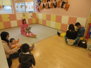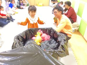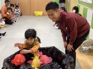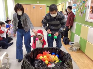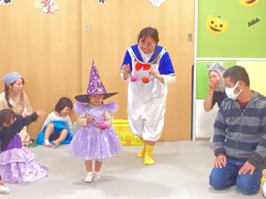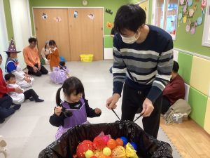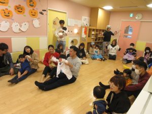 ハロウィン前から曲を流して、みんなで楽しんでいた触れ合い遊びです。