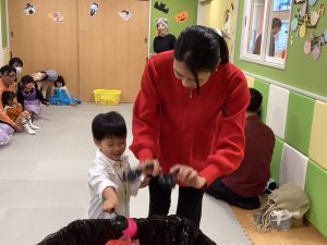2歳児さんは、それぞれ好きなモンスターの製作をしていたので、自分の作ったミイラが出てきて嬉しかったようです🙌