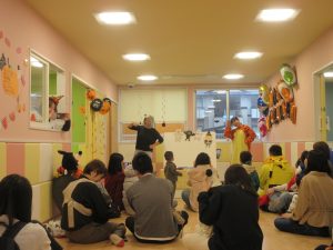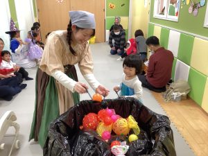 ハロウィン会までに何度か絵本を楽しんでいたこともあり、動物達が仮装する場面では、