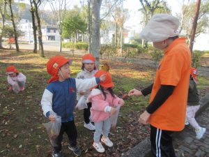 秋探しで見つけてきたものを保育者に見せてきてくれる子どもたちの表情はとても嬉しそうだったので