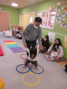 お父さん、お母さんもとっても上手にされていて驚きました😆2歳児さんも挑戦している姿を見てもらえたり、お父さんやお母さんと一緒にすることができたりしてとっても嬉しそうでしたよ♡
