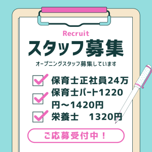 2025年4月~サンライズキッズ保育園橿原園にて、我々と一緒に働いていただける保育士スタッフさんを募集しております!
