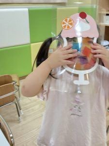好きな色のアイスを選んでもらい、「どのアイスの色にする?」と聞くと「きいろ〜!」「ピンク!」と次々に答えて好きな色を教えてくれました♡