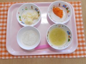 2019.05.27|給食ピックアップ 5月27日 (月)給食 ★幼児食★ ◆ご飯 ◆みそ汁 ◆すき焼き風煮 ◆粉ふき芋 ◆りんご ★離乳食★初期★ ◆お粥 ◆野菜のすりつぶし汁 ◆すりつぶしにんじん ◆すりつぶしじゃがいも 前へ 次へ