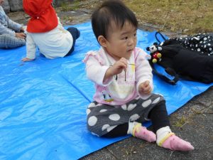 公園ではシートの上でピクニック気分?