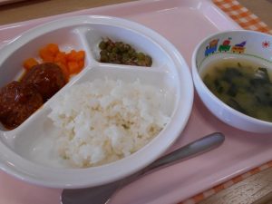 ★幼児食★ ◆ご飯 ◆みそ汁 ◆煮込みハンバーグ ◆いんげんのおかか和え ◆にんじん甘煮  ...