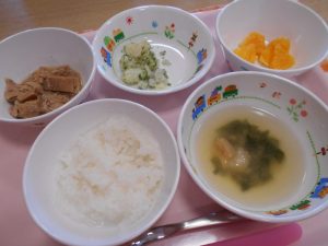 2019.06.26|給食ピックアップ 6月26日(水)給食? ★幼児食★ ◆ご飯 ◆みそ汁 ◆チキンと野菜のケチャップ煮 ◆粉ふき芋 ◆オレンジ ★離乳食★後期★ ◆軟飯 ◆みそ汁 ◆煮込みツナ ◆粉ふき芋 ◆オレンジ 前へ 次へ