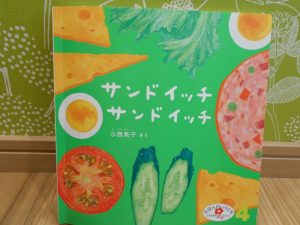 サンドイッチ?を作ろう 真っ白なふわふわのパンにバターを塗って、レタス?をのっけて……。トマト?にハム?にチーズ?をのせて、お次に登場するのは?サンドイッチができるまでを、俯瞰の視点から描いた絵本です。登場する食べ物は、どれもみずみずしく鮮やかな色彩で描かれています。子どもたちの心を釘付けにした、大人気の食べ物の絵本。幼い子どもにとってもっとも身近な「食べる」ことの楽しさ、すばらしさを存分に伝えます。お口に『あ~~ん』とすると嬉しそうにお口を開ける子どもたちです。お子様と絵本を読んだ後に、一緒にサンドイッチを作ってみてはいかがでしょうきっと苦手なお野菜も食べれるかもしれませんね