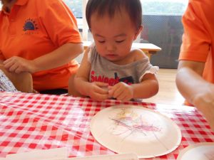 紙皿に何やらお絵描き?