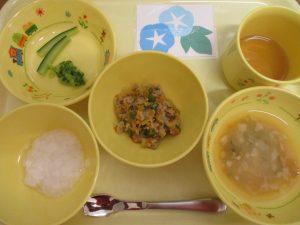粥 味噌汁 そぼろ煮 スティックきゅうり