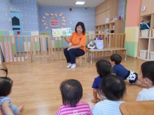 続いて、先生が生き物の絵本を読んでくれました。