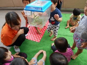 お楽しみ会の様子はいかがでしたか?普段見ることのできない生き物との触れ合いそして発見に、子どもたちも大喜びでしたね。これからも色々な経験重ね子どもの主体性や意欲を大切にしていきたいと思います。