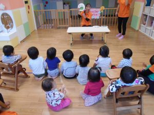 はらぺこあおむしの絵本歌に合わせて(^^♪