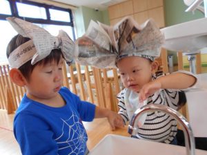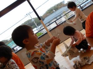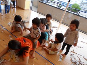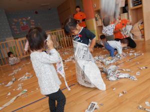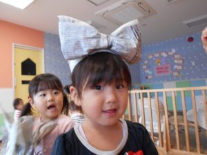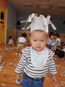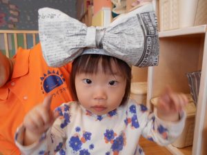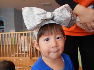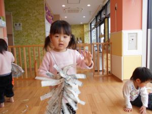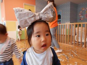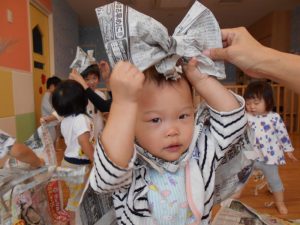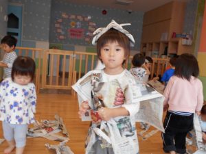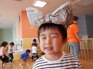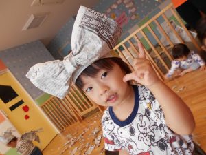 さてさて、君津園では今❢新聞紙遊びが流行中です。