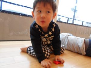 ひっくり返るとなんだか残念そうな子どもたち![]()