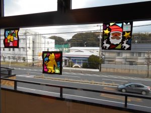 スタッフがステンドガラス風の壁面を作成してくれました。