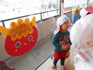 2月といえば節分保育室からは『鬼を退治するぞー