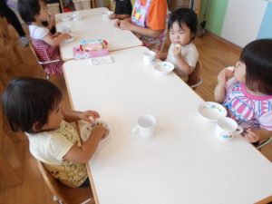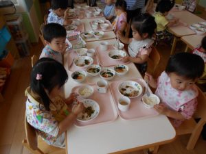 お昼ご飯は行事食でした。そうめんの中にはお星さまのにんじんが入っていました![]()