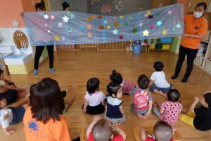 また・・・・子どもたちの可愛らしい声と共に七夕のお歌が聞こえてきました![]()