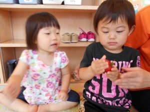 『これなあに?』先生の声に『れんこん』『たまねぎ』と元気にこたえてくれる小さな博士たちはとても可愛らしいです![]()