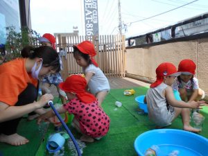 みなさんこんにちは!(^^)! サンライズキッズ保育園君津園です。 水遊びの準備をしていると、子ども...