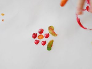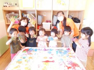 フィンガーペインティング用のスタンプと指先を使って描いたようです