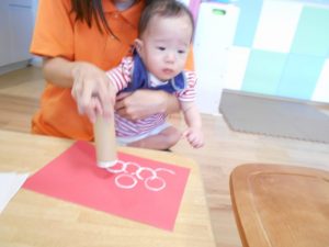 トイレットペーパーの芯を使ってスタンプです