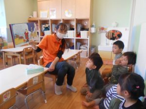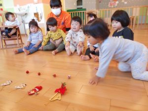 今週は朝晩とぐんっと寒さも増し、コートやダウンを来ている姿も多くみられました。寒いと外へ出るのも・・・・!!しかし君津園の子どもたちは『お外いきたぁ~~~~~い』っと大はしゃぎです。大人の感覚で寒いと、ついつい厚着をさせてしまいがちですが大人の服装から1枚少なめでもちょうどよいと言われています。