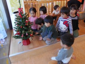 早くサンタさんがきますようにと。。。小さな手を合わせお願いする姿はとってもかわいいです