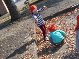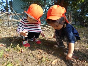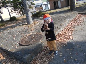 ももぐみさんは落ち葉を指先でちぎり楽しんでいました![]()