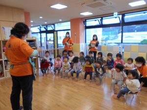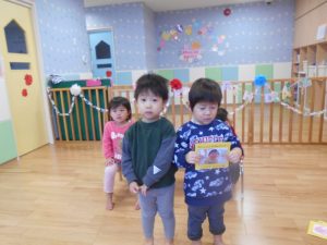 鬼が出てきてちょっぴりびっくりしたけど・・・桃太郎と仲間たちが勝つと子どもたちもとっても嬉しそうでした![]()