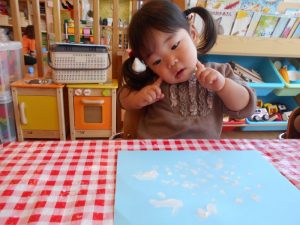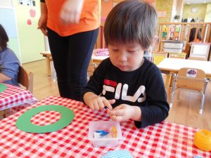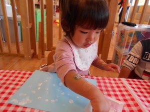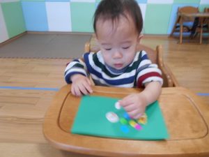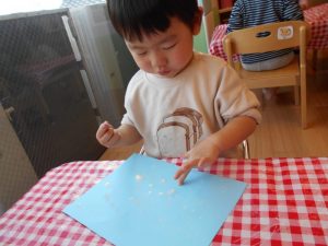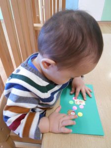 シールをペタペタ・・・指先を使って上手にしあげました