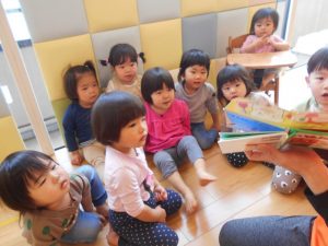 大好きなアンパンマンも歯磨きを頑張っていると聞き、子どもたちも興味深く真剣に聞いていました。ご家庭でも食後や寝る前に歯磨きをするよう心がけましょう。
