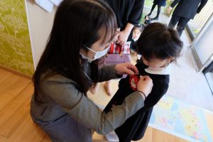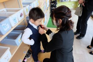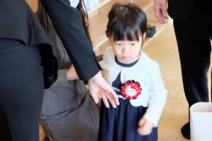 式のはじまりに先生からコサージュを付けてもらいました![]()