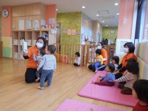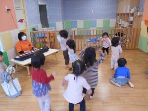 始めは涙がとまらなかったお友達も少しずつ笑顔を見せ、リトミックや体操に楽しく参加する姿も見られるようになりました!