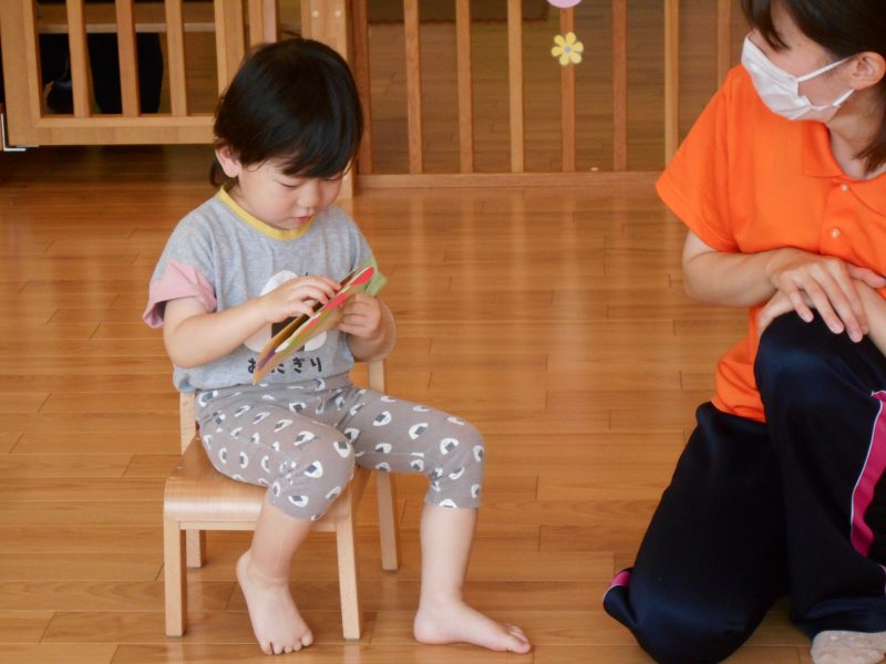 お名前を呼ぶと「はーい!」と大きなお返事をしてニコニコしながら前に出てきてくれました(^0^)