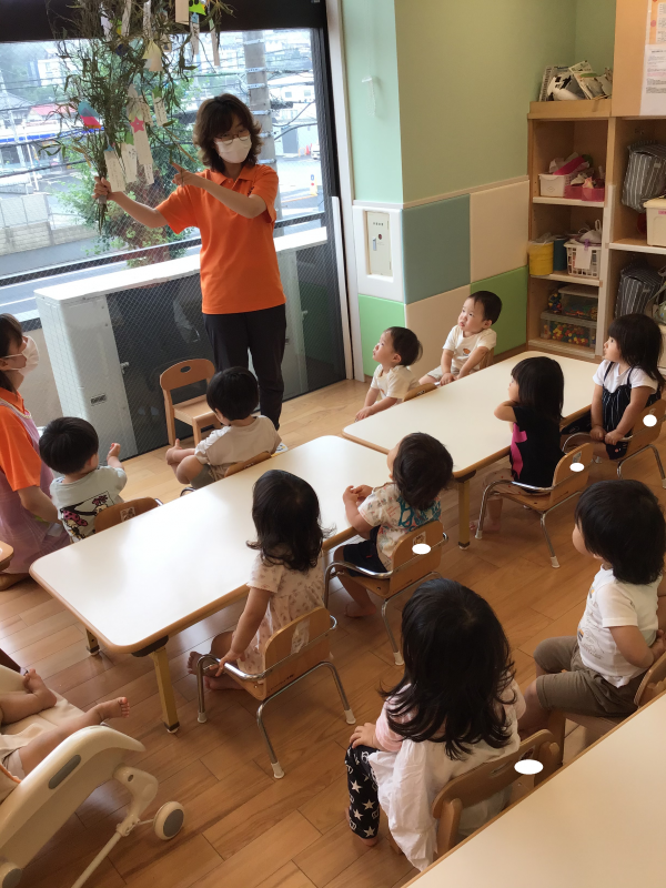 お話が終わると、みんなで「たなばたさま」や「きらきらぼし」のお歌をうたいました。