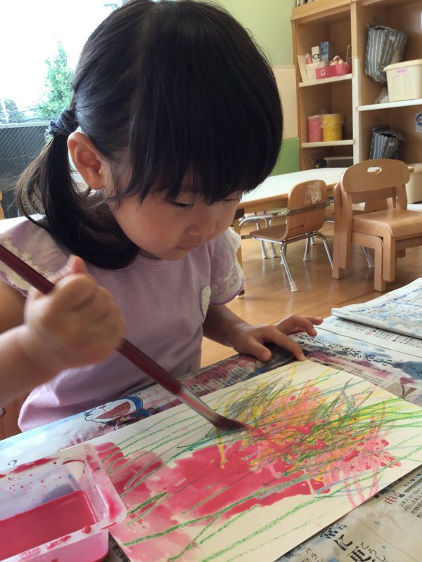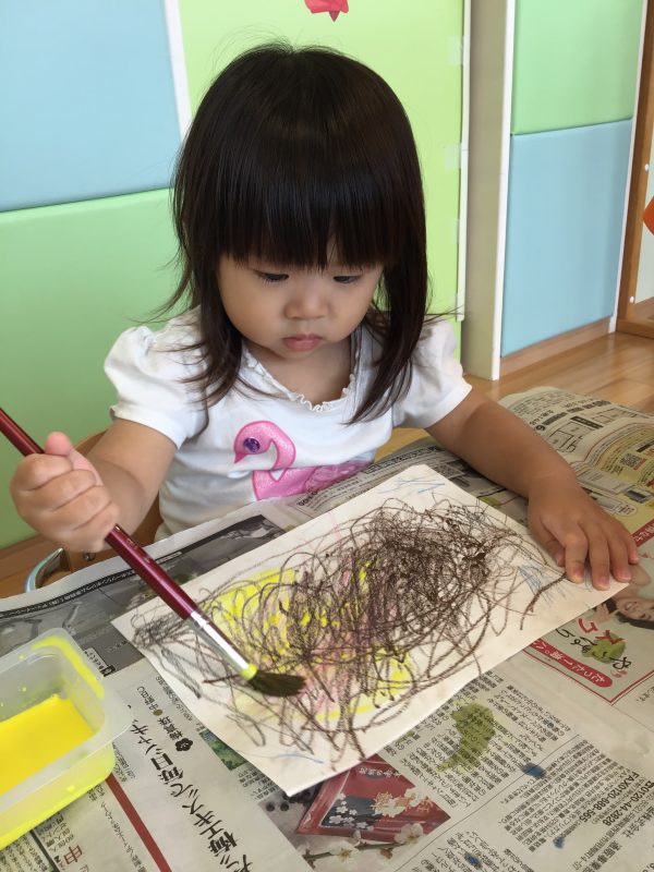 今度は好きな色を選び、絵の具で上から色を塗っていきました。