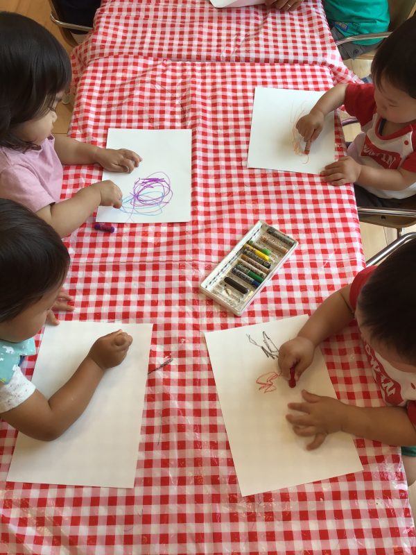 最初に好きなクレヨンを使って自由にお絵描きをしました?