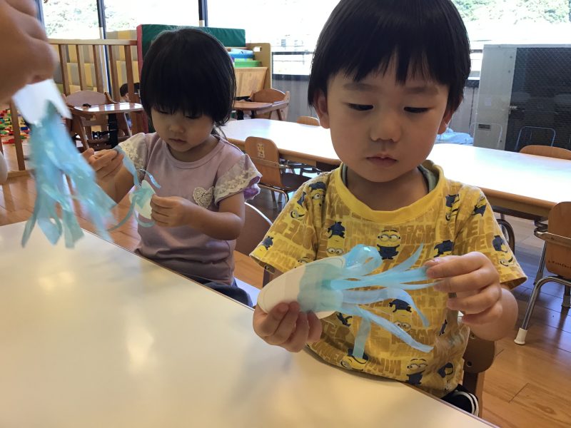 「くらげさんどーこだ!」と机の下に隠してかくれんぼをするお友達もいましたよ?