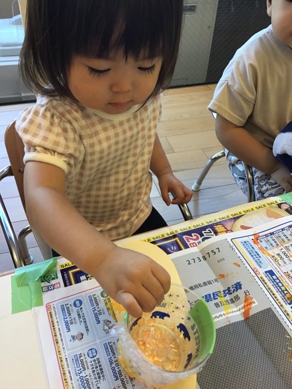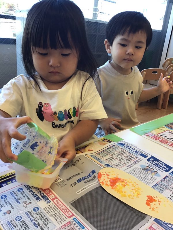 不思議な感触が楽しかったのかどんどん細かく裂いていくお友達もいました♫