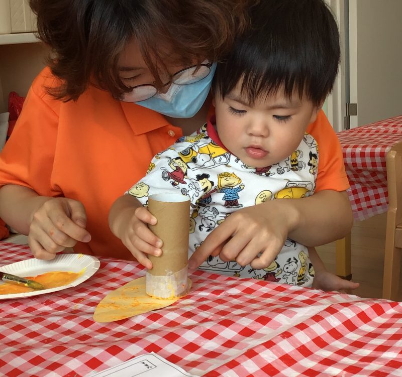 それから、1歳児クラスではとうもろこしの製作も合わせて行いました?