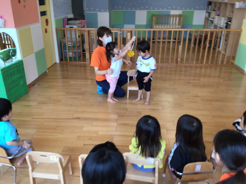 週の最後は、3さいになったお友達が転園するということでみんなでお別れ会をしました。