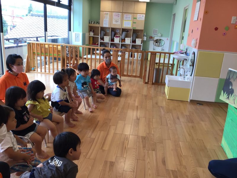 みんなからと先生達からのプレゼントを渡したり、大型絵本を読んだりしました