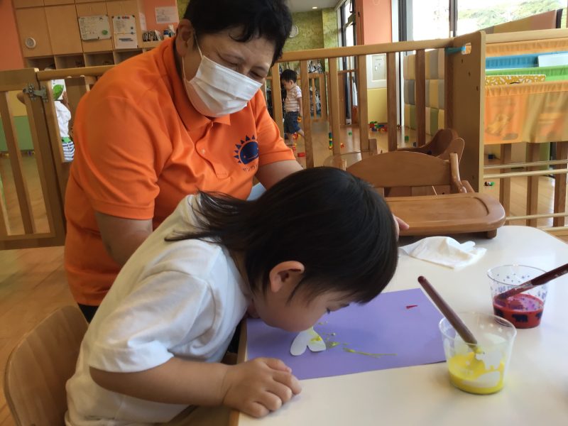 2歳児クラスでは吹き絵の製作??