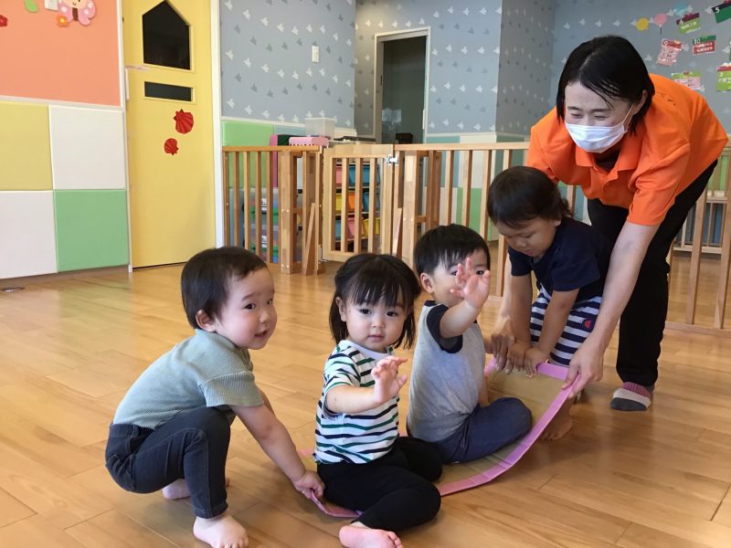 お友達が乗ると引っ張ってあげようとみんなでよいしょ、よいしょ、と協力しました?