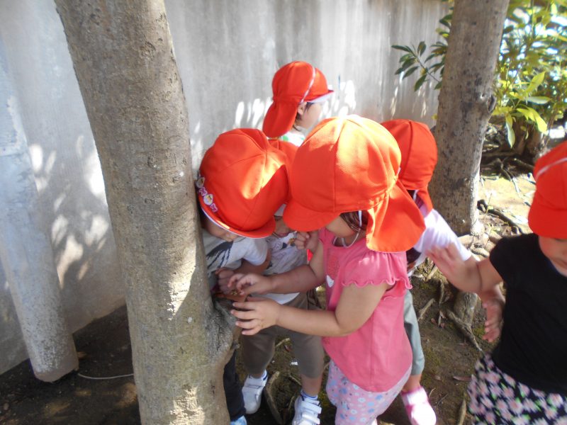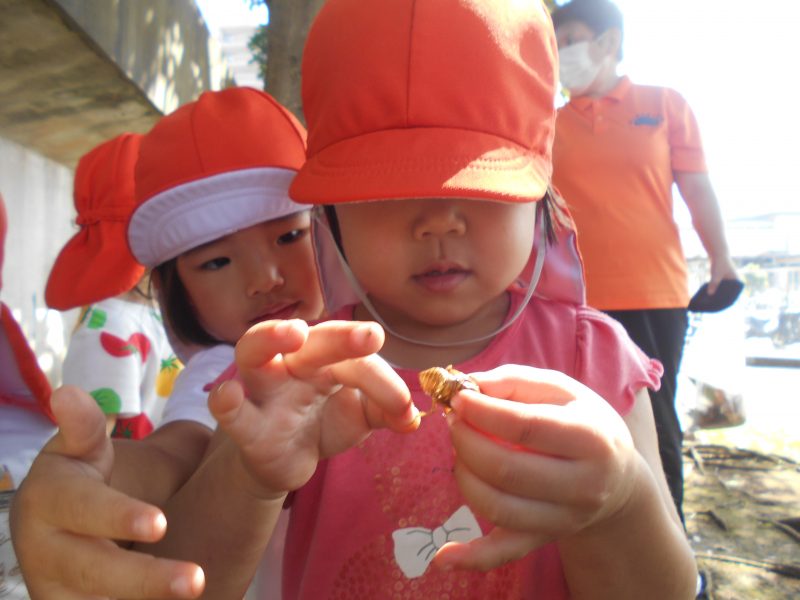 セミの抜け殻の不思議な形に興味津々で見つめる子どもたちでした(#^.^#)