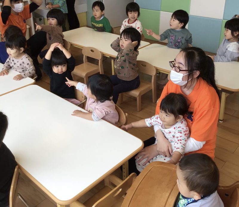 「鬼がいた!」と指をさすお友達につられて指をツノにして鬼のポーズをする子どももいました?