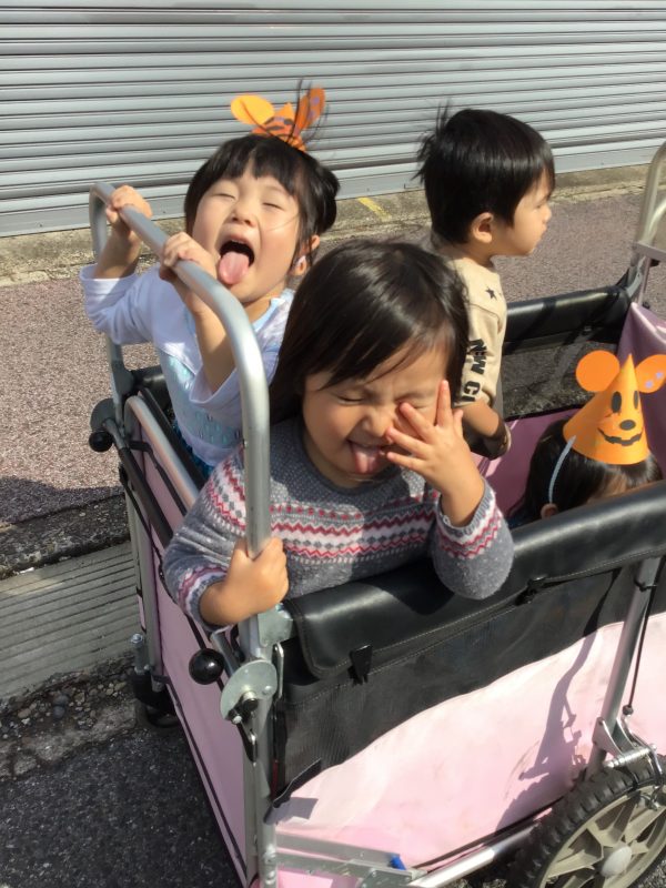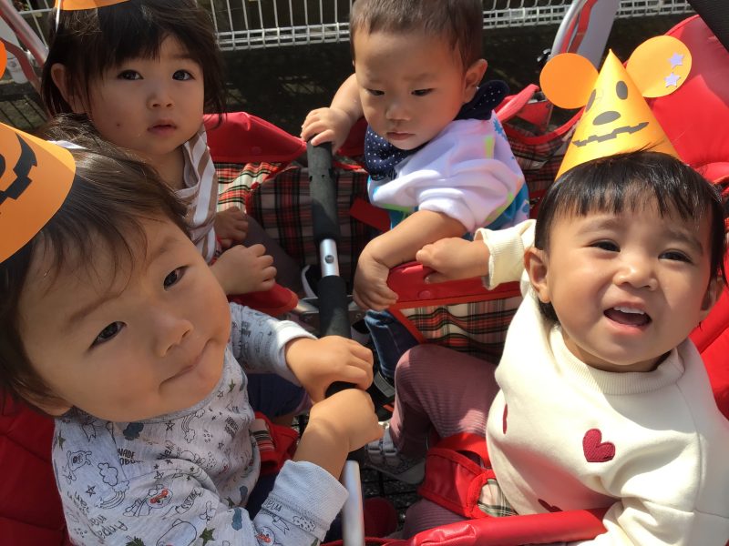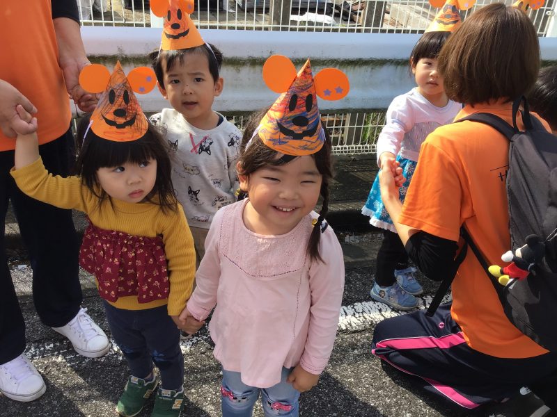 仮装をしてお散歩する子どもたち、とってもかわいくて先生たちもメロメロでした![]()