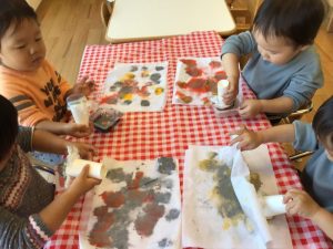 自分の中で完成するとパチパチと手を叩いて笑顔を向けてくれたり、「もっとやりたい!!」といろんな色を混ぜて使う子どももいましたよ